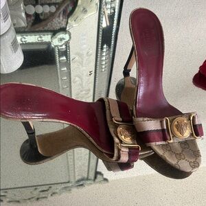 Gucci Women's Burgundy and Tan Heels 36 AUTHENTIC