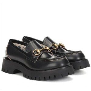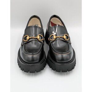 Gucci Women’s Cordovan Harald Moccasin Horsebit Platform Loafers Black EU36 5772