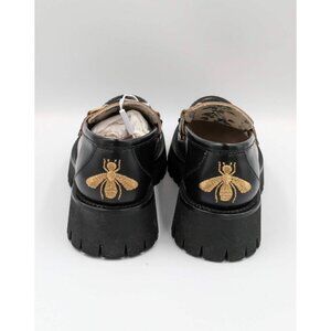 -The shoes feature a 2 inches platform, an aged gold horsebit detail on the top, and a gold bee embroidered at the heel.