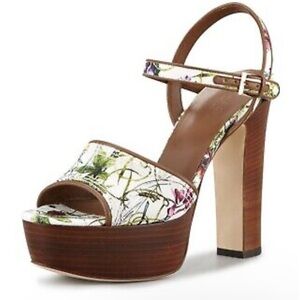 Gucci Women’s Danielle Flora Infinity Canvas Leather Platform Heel Sandals Strap