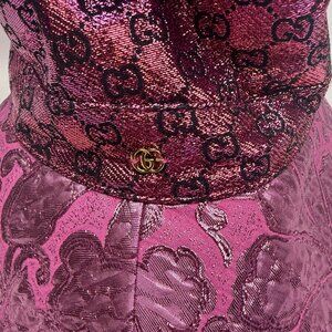 Gucci Women’s GG Monogram Metallic Sun Hat Size Large 58 CM $695
