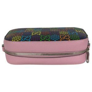 Features Base This camera style cross-body bag is crafted of monogram canvas with black leather trim. The bag features pink and black shoulder strap. This opens to a black fabric interior with room for all of your daily essentials with the sophisticated style only from Gucci!. Removable Strap, multiple style. Length: 9.5 in, Height: 5.5 in, Width: 2.75 in, Drop: 19.5 in