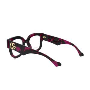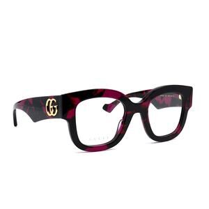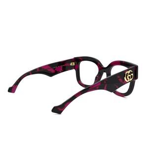 Elegant Gucci glasses featuring a striking black and pink frame. Adorned with the signature GG emblem.