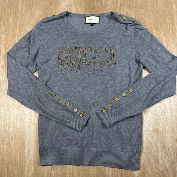 Gucci Women’s Gray Size Rhinestones Long Sleeve Pullover Sweater Size Large.