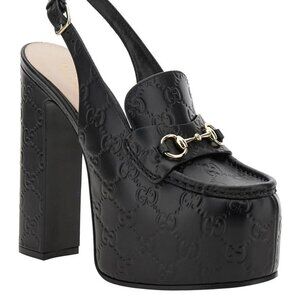 Gucci Women's Horsebit Platform Slingback Loafer Pumps Leather Size 40.5