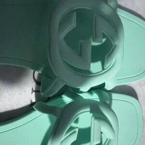 Gucci Womens Interlocking Sandals Slides Rubber 9 Pale Blue New