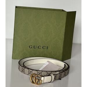 Gucci Women’s Leather GG Thin Width Belt Beige/Brown 110/44 409417 NWT