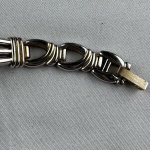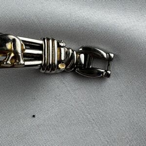 The product is a Gucci women's wristwatch with a quartz movement. The watch features a metal band and displays time in analog format. It has a unique design with elephants incorporated into the metalwork. The watch is being sold for parts or repair, indicating that it may not be in working condition. It is a stylish and distinctive piece that would make a statement accessory once restored.