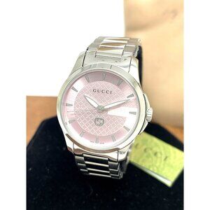 Gucci Women's Watch YA1265047 G-Timeless Swiss Quartz Pink Dial Steel 27mm $1250 (AY7211Y)