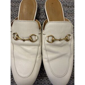 Gucci Womens White Leather Horsebit Mule Slides Size 40 EU