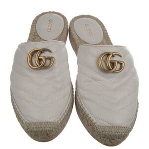Step out in style with these elegant white espadrille mules from Gucci. Perfect for any occasion, these shoes offer both comfort and luxury.