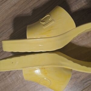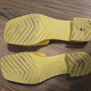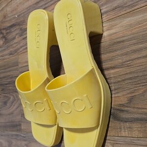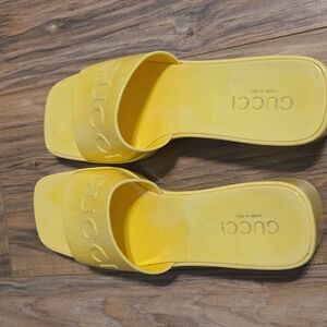 Step out in style with these vibrant yellow slide sandals from Gucci. Perfect for adding a pop of color to any outfit.