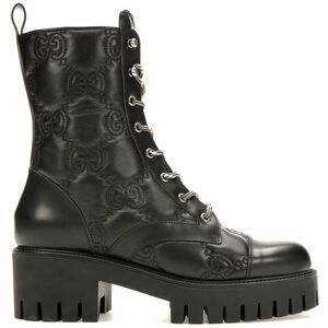 Gucci Women's GG Matelassé Leather Quilted Platform Combat Boots Black 36