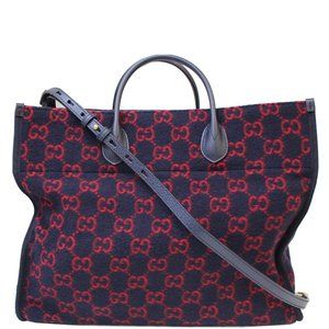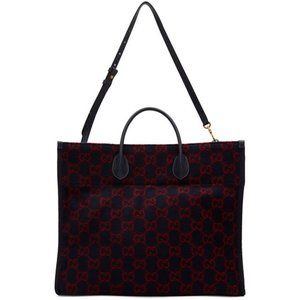 Gucci Wool Monogram GG Tote in Navy NEW WITH DUST BAG