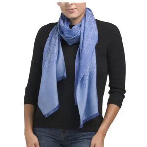 Gucci Wool & Silk Monogram GG Logo Scarf in Blue, New with Tag