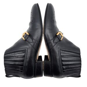 Gucci Worsh Black Leather Chelsea Ankle Boot Size 38.5 US 8.5 Gold Buckle Brogue