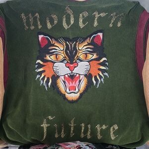 Gucci Y2K Modern Future Corduroy Tiger Mad Cat Green Tan Bomber Varsity Vint…