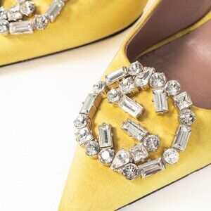 Gucci Yellow Raso Seta Crystal-GG Pointed-Toe Pumps