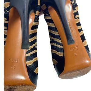 Gucci Zebra Print Pony Hair Leather Sz 10 EU 40 Lace Up Platform Bootie Heels