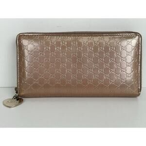 Gucci Zip Around Heart Wallet in Metallic Pink Microguccissima Leather B-9