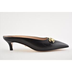 Gucci Zumi Black Leather Silver Gold GG Kitten Heel Mule Slide Loafer Pump 37