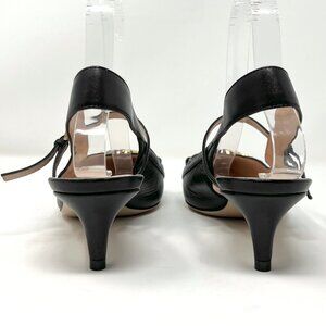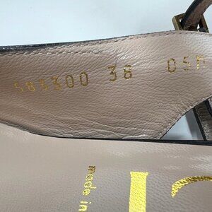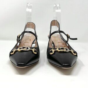 Gucci Zumi Interlocking Logo Black Leather Pointed Toe Low Heel Slingback Pumps in perfect brand new condition. They were very well cared for and come from a non smoking, pet free home. All pictures are of the actual item, taken in house (no stock photos). Style serial number 583300. These were originally $895, they are very rare and hard to find, especially in this condition. Heel height: 1.75" (45mm).tags: designer, logo, classic, limited edition, kitten heels, low heels, comfortable, elegant, mule, slip on, buckle, metallic gold silver hardware, leather sole, leather lining.