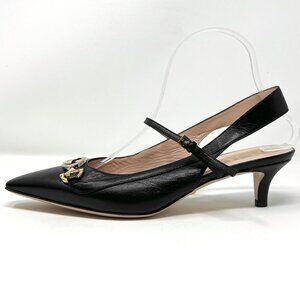 Gucci Zumi Interlocking Logo Black Leather Pointed Toe Low Heels Slingback Pumps