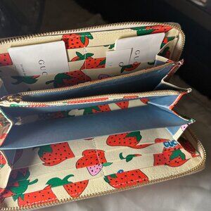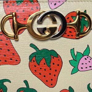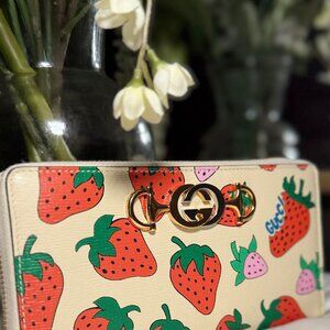 🍓Gucci Zumi Strawberry Zip Around Wallet – Ivory & Red Calfskin 🍓