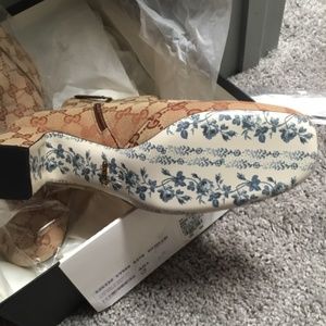 Brand new pair of Gucci monogram tan booties in a size 40.5 (10.5). Never work and still in original package with tags.