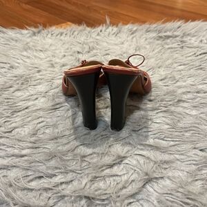 Gucci authentic blondie sandal red and brown slip on tie heel size 7B, wear on inside of shoes as shown in picture