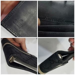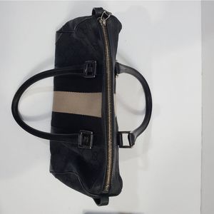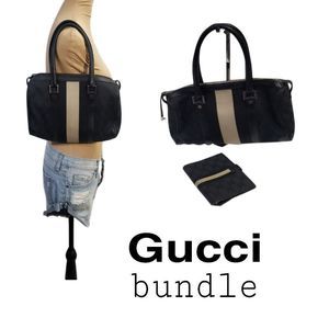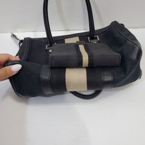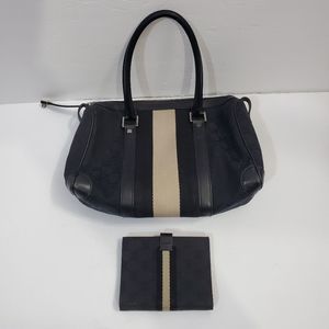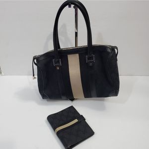Gucci authentic small Boston hand bag black web & matching planer wallet