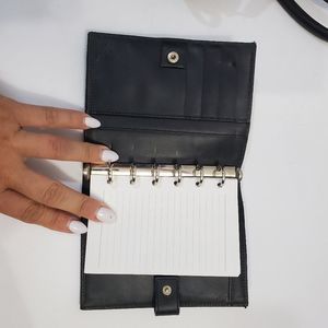 only a few pages left in agenda and im not sure they are original as theses can be replaced. Multiple slots in side for credit card business cards and more.