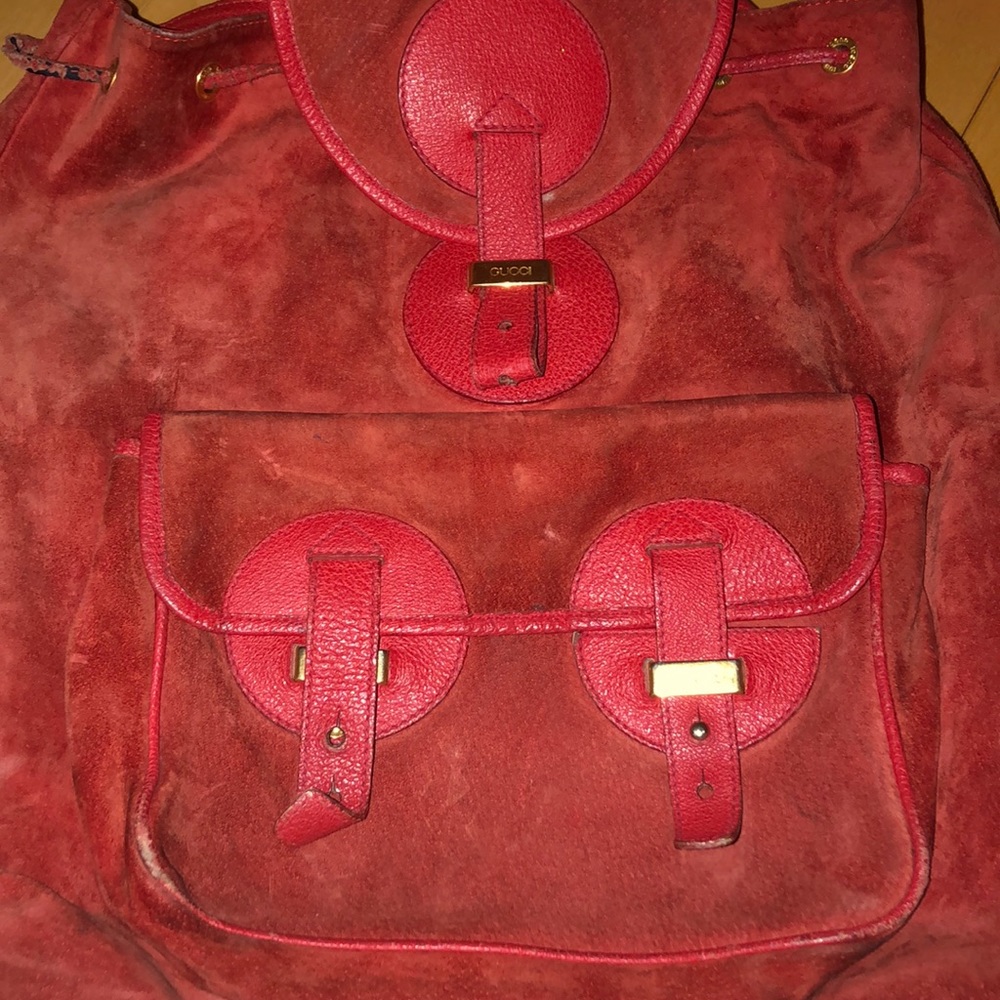 Red leather/ suede 1980s Gucci backpack 🎒 VINTAGE no holes worn authentic open to bargaining