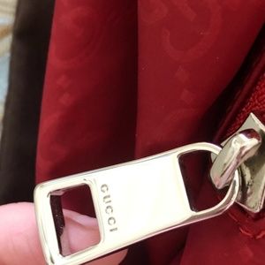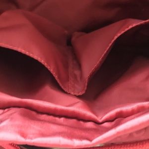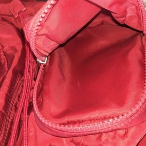 Gucci red nylon/ leather backpack with spacious interior and exterior pockets