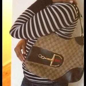 I have the all brown leather Gucci hobo similar shape but it's dark brown leather with Gucci G's on front Center of bag. Completely authentic I paid $600 for this bag I'm considering a trade if you want to see pictures let me know
