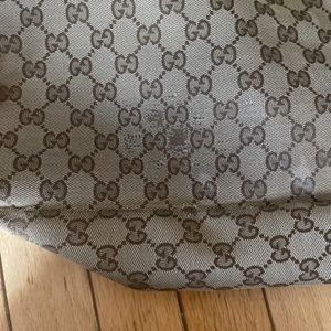 Pre-owned and loved 100% authentic Gucci bag. Shows minor wear, and the handle can easily be fixed.