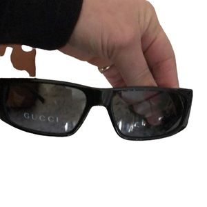 Gucci black unisex has tag on lens black dark gray lens side panels NWOT
