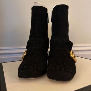 Gucci Marmont Black Suede Boots – Worn only once, in excellent condition. Comes complete with original box and dust bag. Timeless design, originally retailed at $1100.