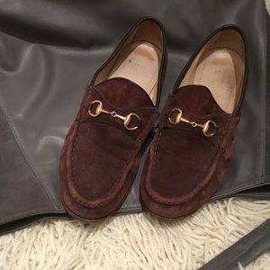 Gucci brown horsebit suede loafers.