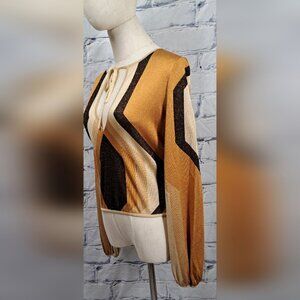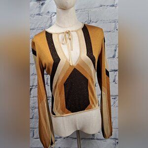 Gucci by Tom Ford Runway Gold Metallic Lurex Knit Long Sleeve Top Y2K 2000 XS