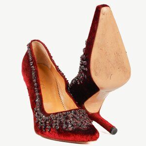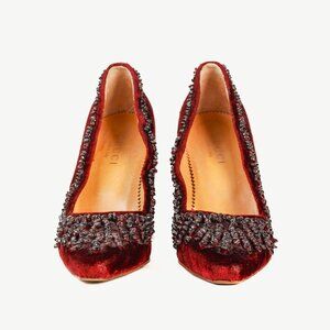 Gucci by Tom Ford S/S 1999 Burgundy Velvet Onyx Embellished Pumps