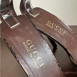 Featuring a sleek silhouette, delicate ankle strap, and timeless design, they embody bold sophistication and iconic 1990s Gucci style.