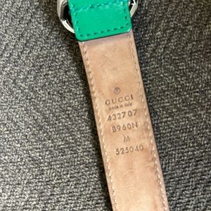 Gucci children’s green leather belt silver buckle sz m good condition and clean 27” inches total belt stain inside