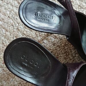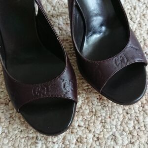 Gucci classic guccissima brown leather peep toe slingback size 6B
