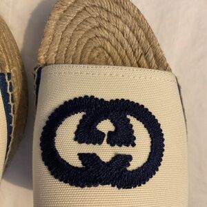Gucci cream and blue canvas espadrilles slides slides size 41