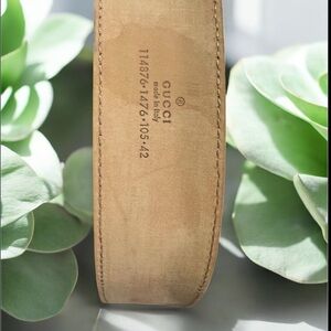 Elegant Gucci belt. Features a gold buckle. Perfect for any outfit.never used unfortunately have little scratches . Measurements L- 45 inches W- 1.5 inches