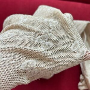 Gucci champagne colored fishnet tights with monogram throughout and logo waistband. Looks great from shorts to dress or peeking through a pair of ripped jeans. New with tags and dust bag.