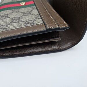 Gucci flap wallet in GG canvas with classic green-red stripe