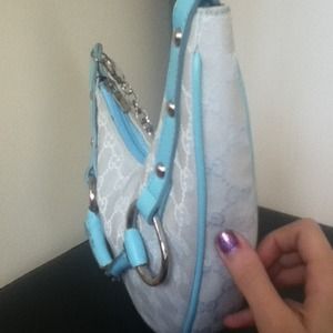 Tiffany blue and white Gucci purse with silver accents. Lightweight and durable, in very good condition!