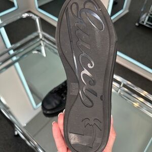 Black canvas with signature Gucci pattern, lace-up, leather and rubber trim, round toes